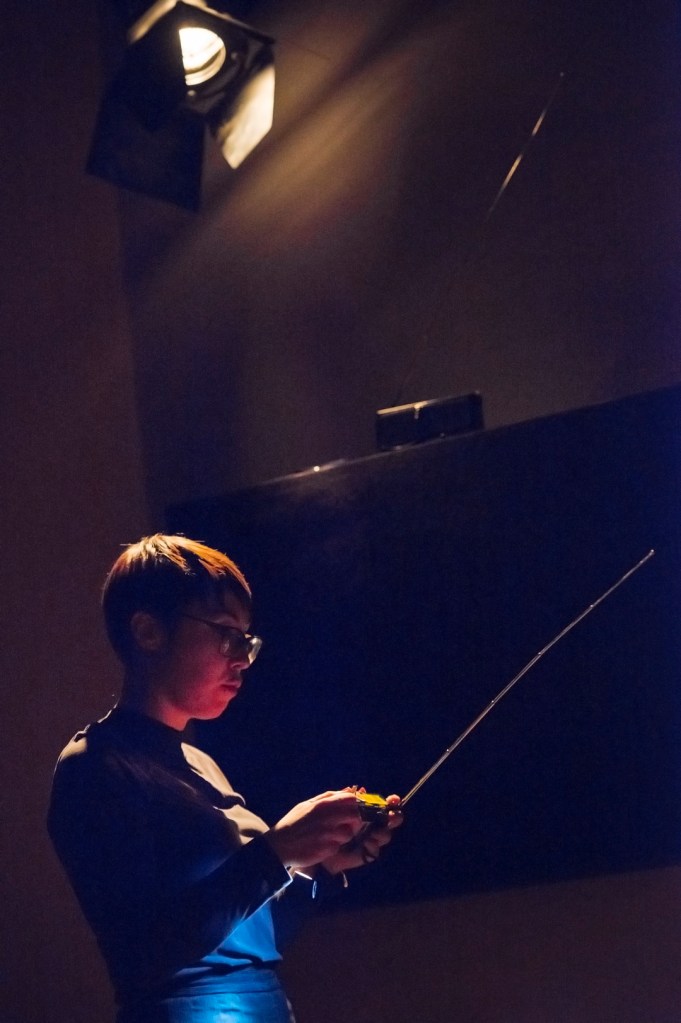 The field recordings that were collected prior to the performance should be played back through media players with each one being connected to a mini-FM transmitter. A unique FM frequency is to be assigned to each recording/media player. The media players are to be hidden around the performance space and their attributed frequencies are to be known only to those performers who are controlling the radio sets.