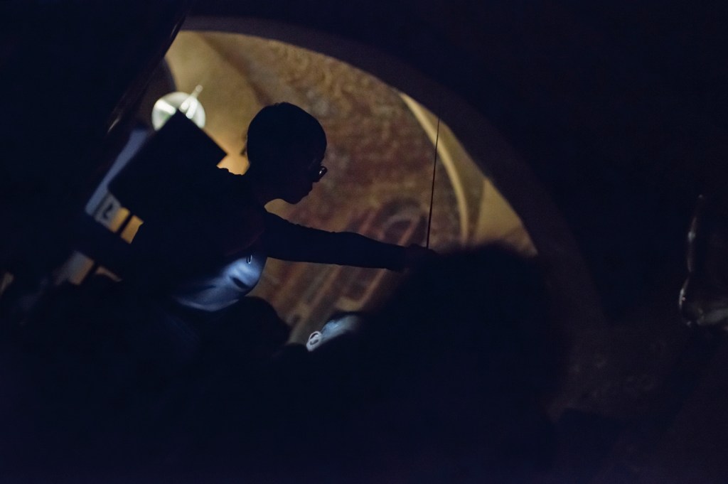 To be performed in a public place, such as a club or concert venue. A location where the exterior meets the interior is preferable, but not essential. Any number of players can participate, however, the piece will work better with a smaller group of about 2-4 people.