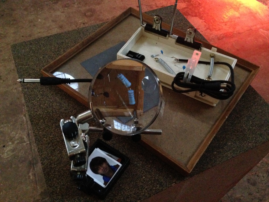 The mute radio objects recall dada readymades and require no further intervention other than appropriate presentation in a gallery space. The utilisation of radio waves and field recordings is a little more complex. These recordings are presented in a performance that is composed of four movements: a) an acoustic representation of Earth radio using found objects such as leaves, tissue paper, thistles etc. b) the modulation of local electromagnetic interference via a chain of guitar pedals and other filters c) the transmission of local field recordings through mini-FM stations in order to bring the outside in and d) a live mix of various VLF streams found on the internet used to suggest an accurate depiction of the Earth’s radio activity in real time.